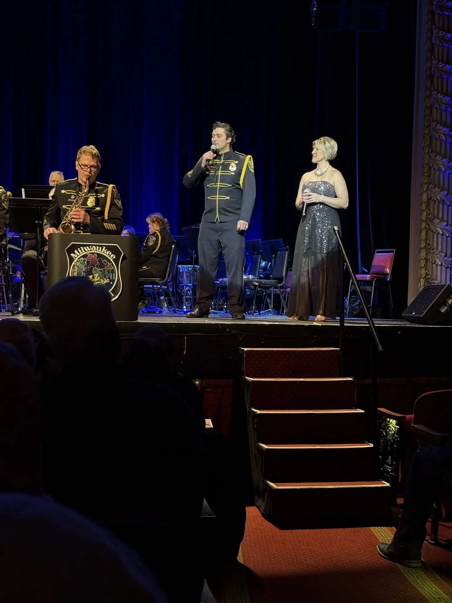 (Left) Milwaukee Police Band Jazz Ensemble (Right) Steven Lavel, GiGi Boone-Frazier Young, Kerri Jokala, Shannon Smikowski, Dorothy James